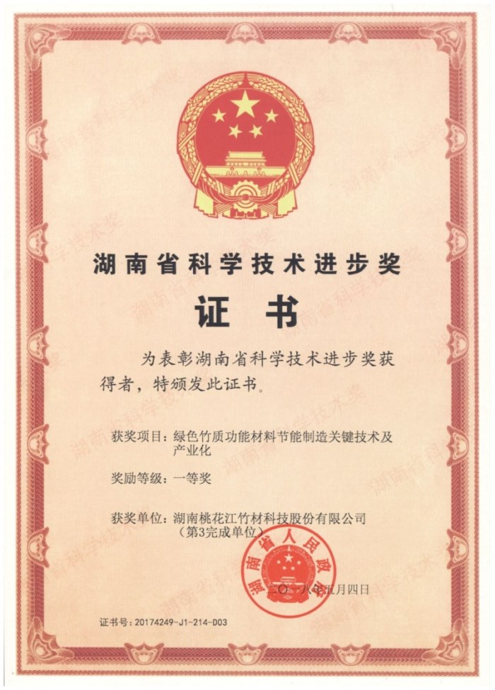 喜訊:桃花江竹材榮獲2017年湖南省科學(xué)技術(shù)進步